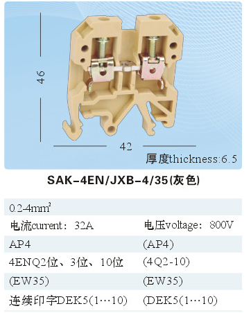 SAK-4EN/JXB-4/35(灰色)通用接線端子
