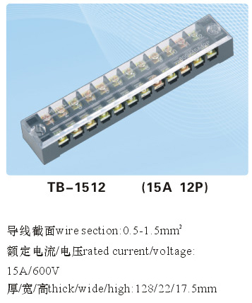 產(chǎn)品總匯>TB-1512 (15A 12P)通用接線端子